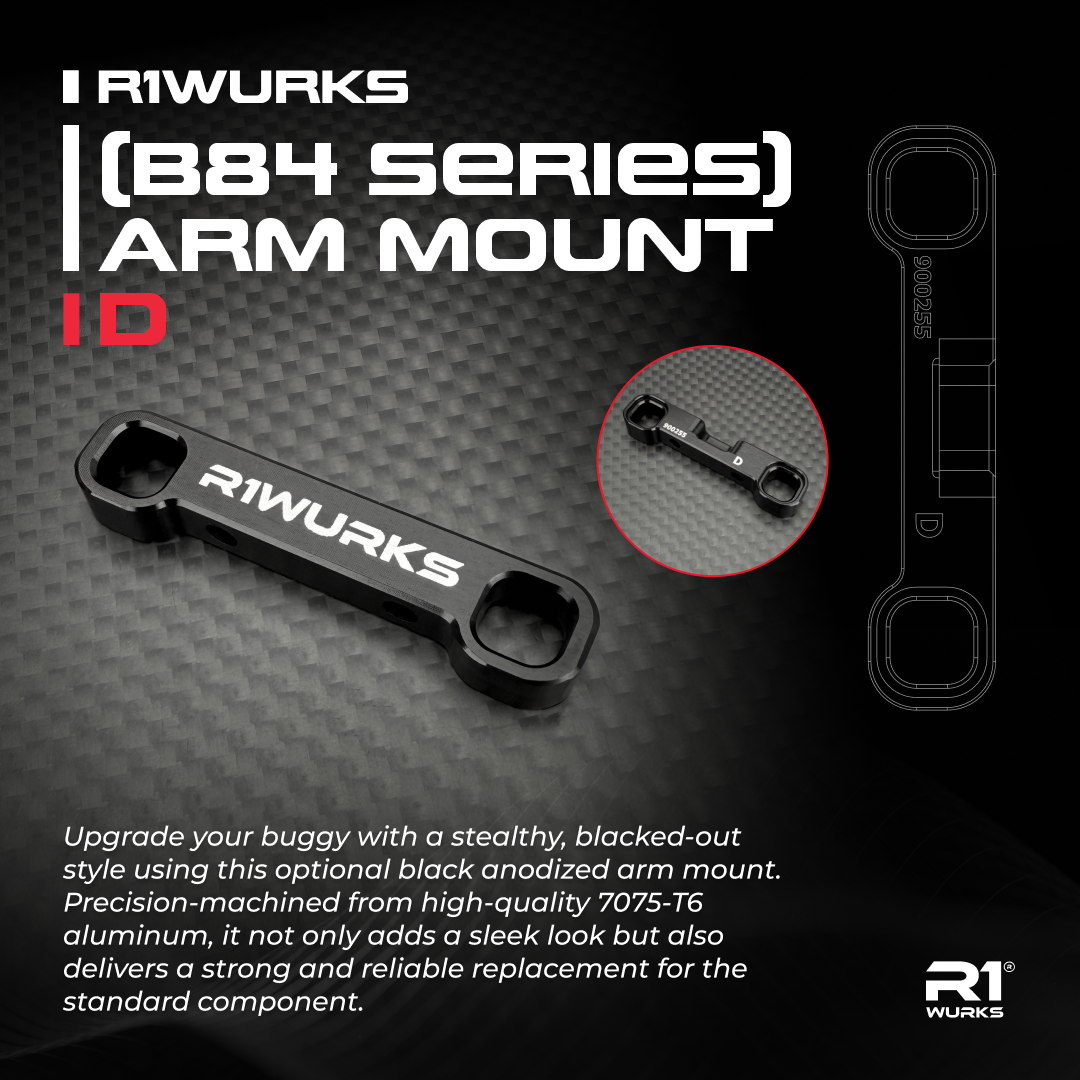 Upgrade your buggy with a stealthy, blacked-out style using this optional black anodized arm mount. Precision-machined from high-quality 7075-T6 aluminum, it not only adds a sleek look but also delivers a strong and reliable replacement for the standard component.