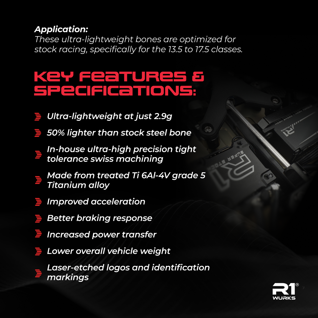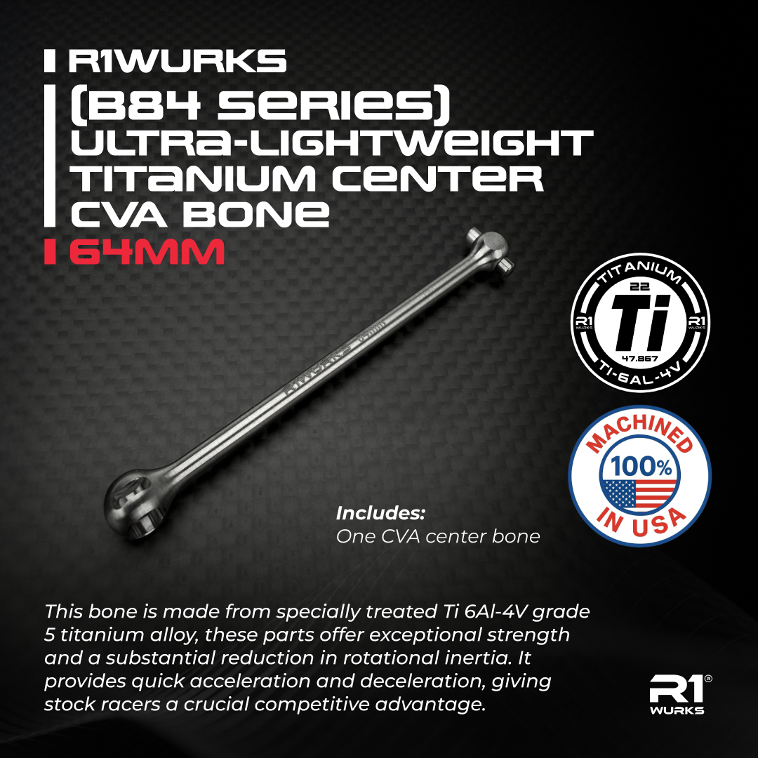 Made from specially treated Ti-6Al-4V Grade 5 Titanium, this 64mm center CVA bone delivers exceptional strength with a dramatic reduction in rotational inertia. The result, faster acceleration, quicker braking, and improved power transfer, giving stock racers a critical edge in 13.5 T–17.5 T classes.