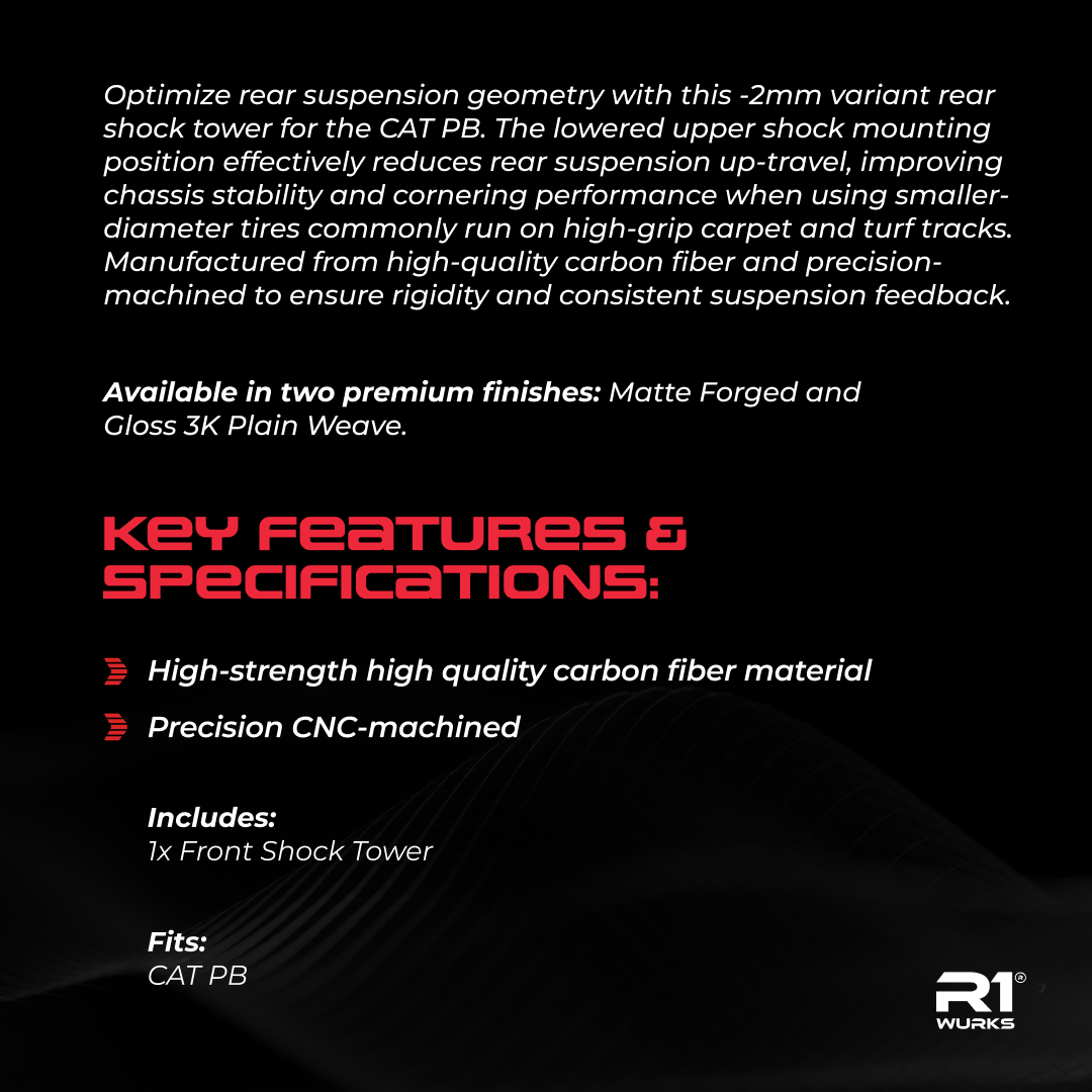 R1WURKS (CAT PB Series) Rear Carbon Fiber Shock Tower -2mm