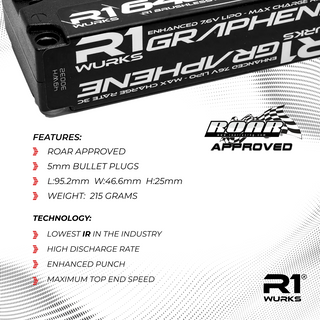 R1WURKS 9000 mah 280c 2S Shorty soft case Battery for Drag Racing 030051D